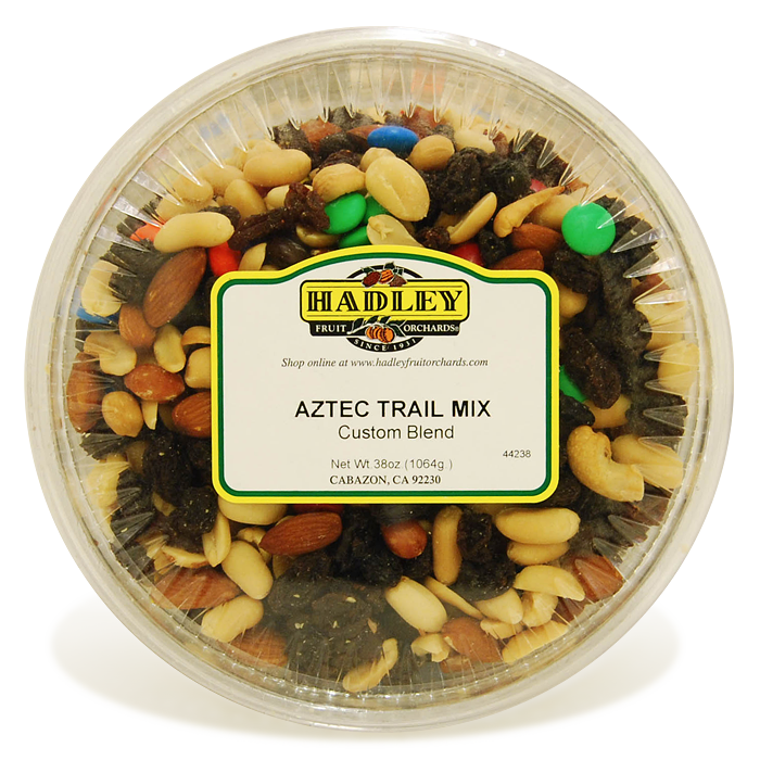 Ingredients: Blanched Peanuts, Raisins, Cashews, Almonds, Chocolate Pokies ( sugar, unsweetened chocolate cocoa butter, whole milk powder, soy lecithin, vanilla, corn syrup, artificial colors). Net Weight: 38oz C.O.O USA, Vietnam