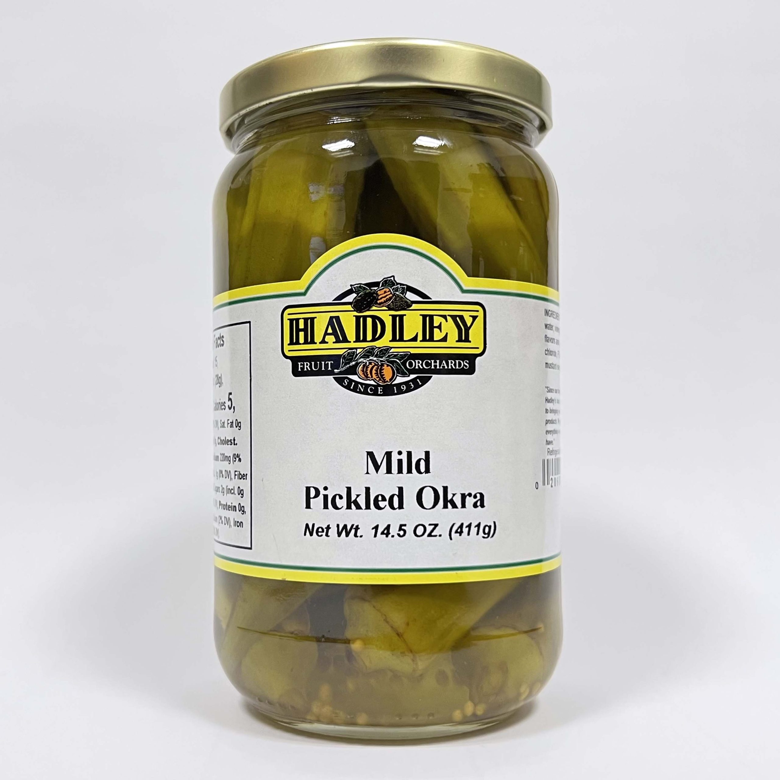 Ingredients: Fresh Okra, Water, Vinegar, Salt, Natural Flavors & Spices, Calcium Chloride, FD&C Yellow #5, Mustard Seed.
