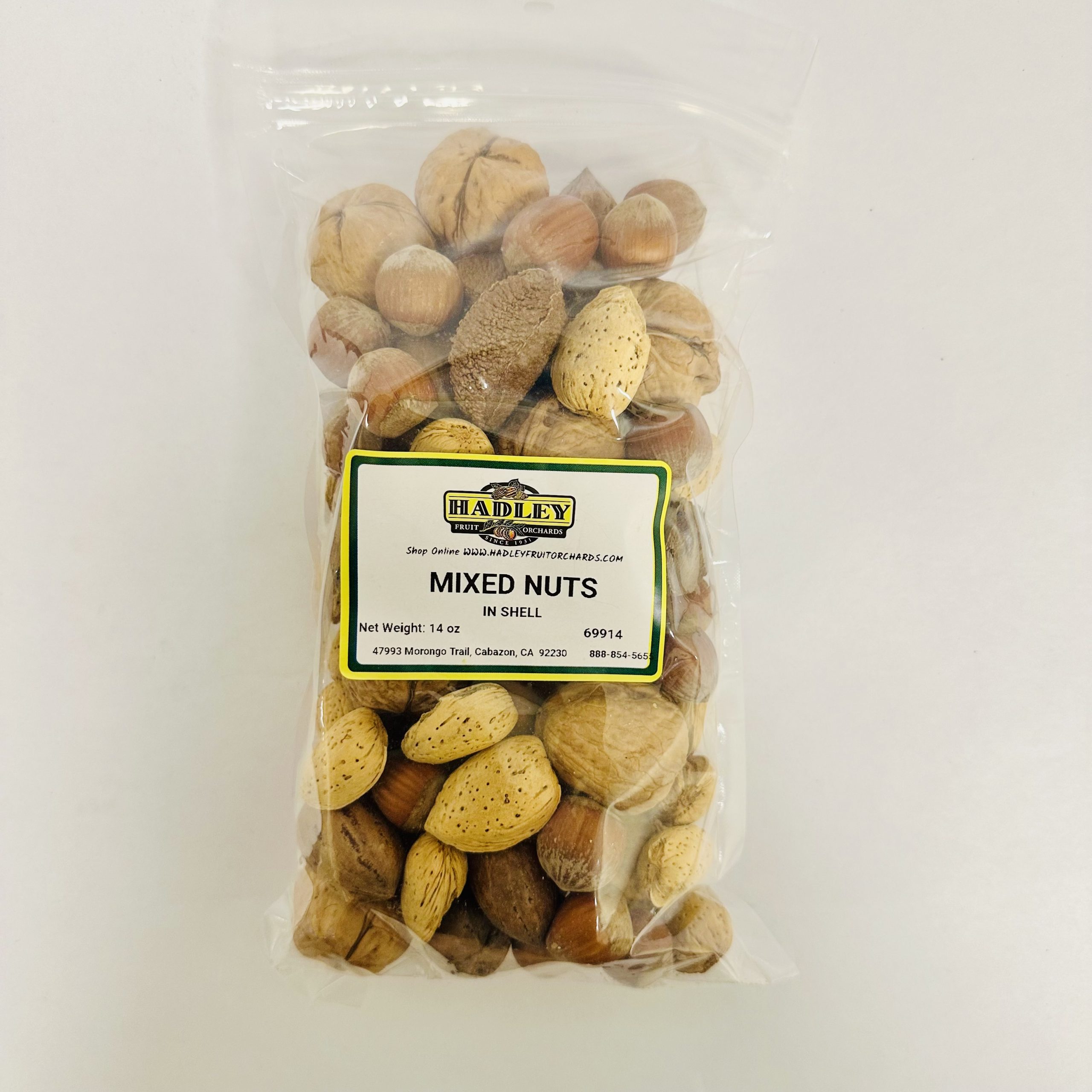 Ingredients: In shell Walnuts, Filberts, Almonds, Pecans and Brazil Nuts. Net Weight: 14oz C.O.O USA