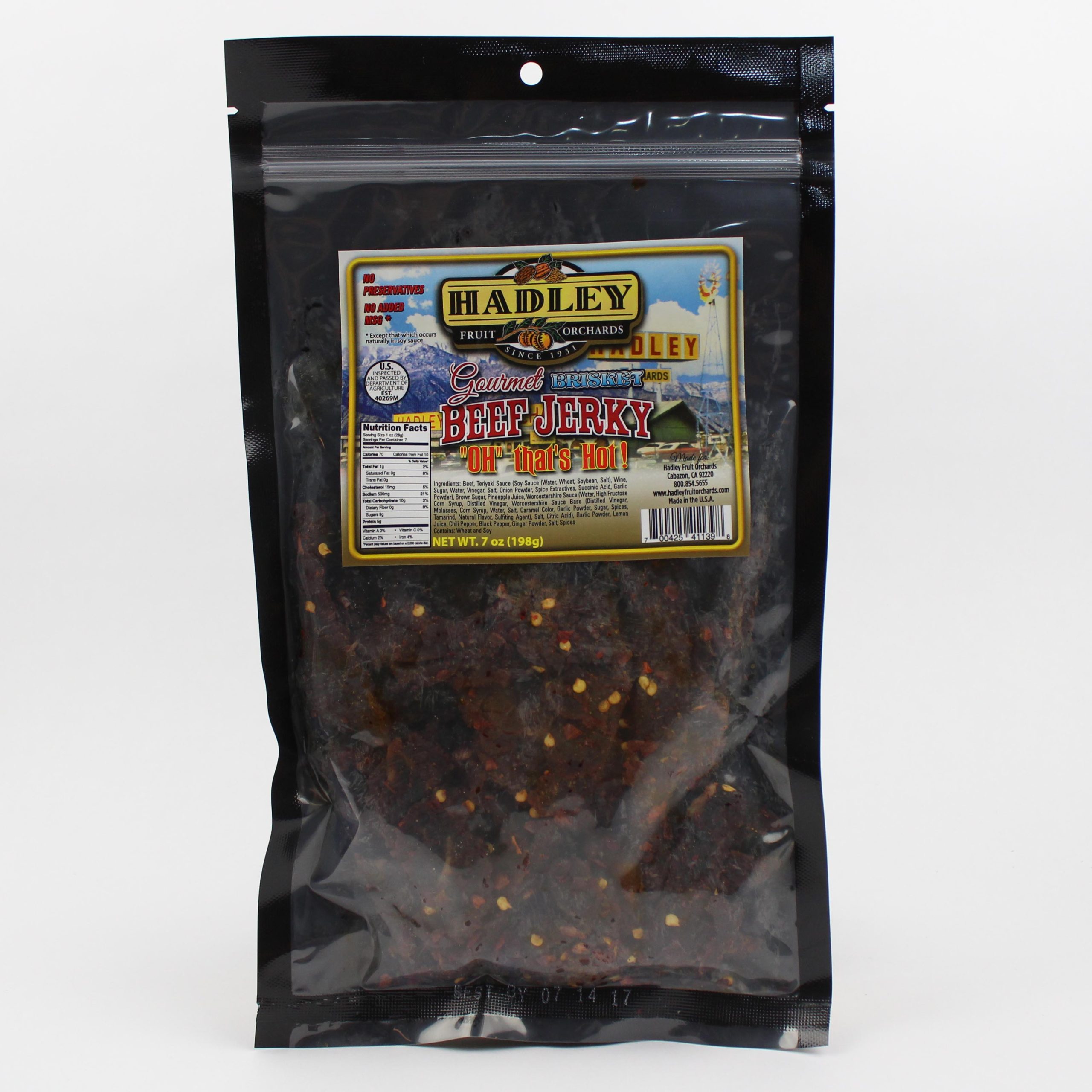 Ingredients: Beef, Teriyaki Sauce (soy sauce (water, wheat, soybeans, salt), Wine, High Fructose Corn Syrup, Water, Vinegar, Salt, Spices, Onion Powder, Succinic Acid, Garlic Powder, Sodium Benzoate: less than 1/10 of 1% as a preservative.), Brown Sugar, Pineapple Juice (pineapple juice from concentrate [water, pineapple juice concentrate], ascorbic Acid [vitamin C, vitamin E, vitamin A), Worcestershire Sauce (distilled white vinegar, molasses, sugar, water, salt, onions, anchovies, garlic, cloves, tamarind extract, natural flavorings, chili pepper extract), Lemon Juice (lemon juice concentrate, lemon emulsion, sodium benzoate), Granulated Garlic, Ground Pepper, Ginger, Salt, Cayenne.