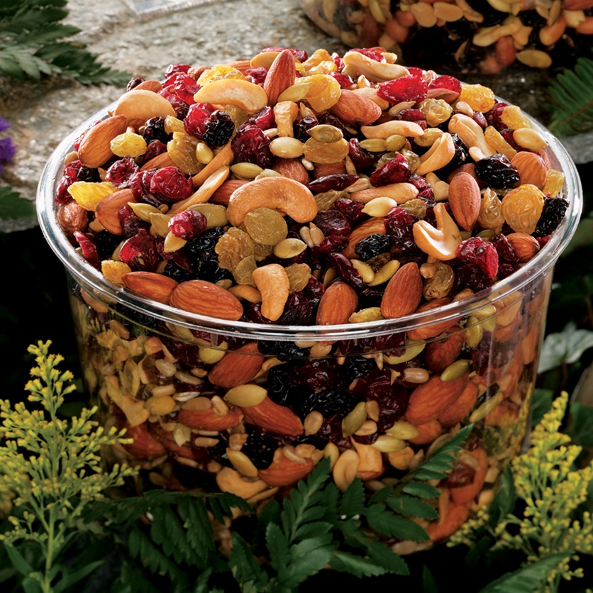 Ingredients: Cranberries (cane sugar, sunflower oil) Almonds (canola oil, salt), Cashews (soybean oil, salt), Pepitas ( canola oil, salt), Golden Raisin ( sulphur dioxide), Red Flame Raisin.