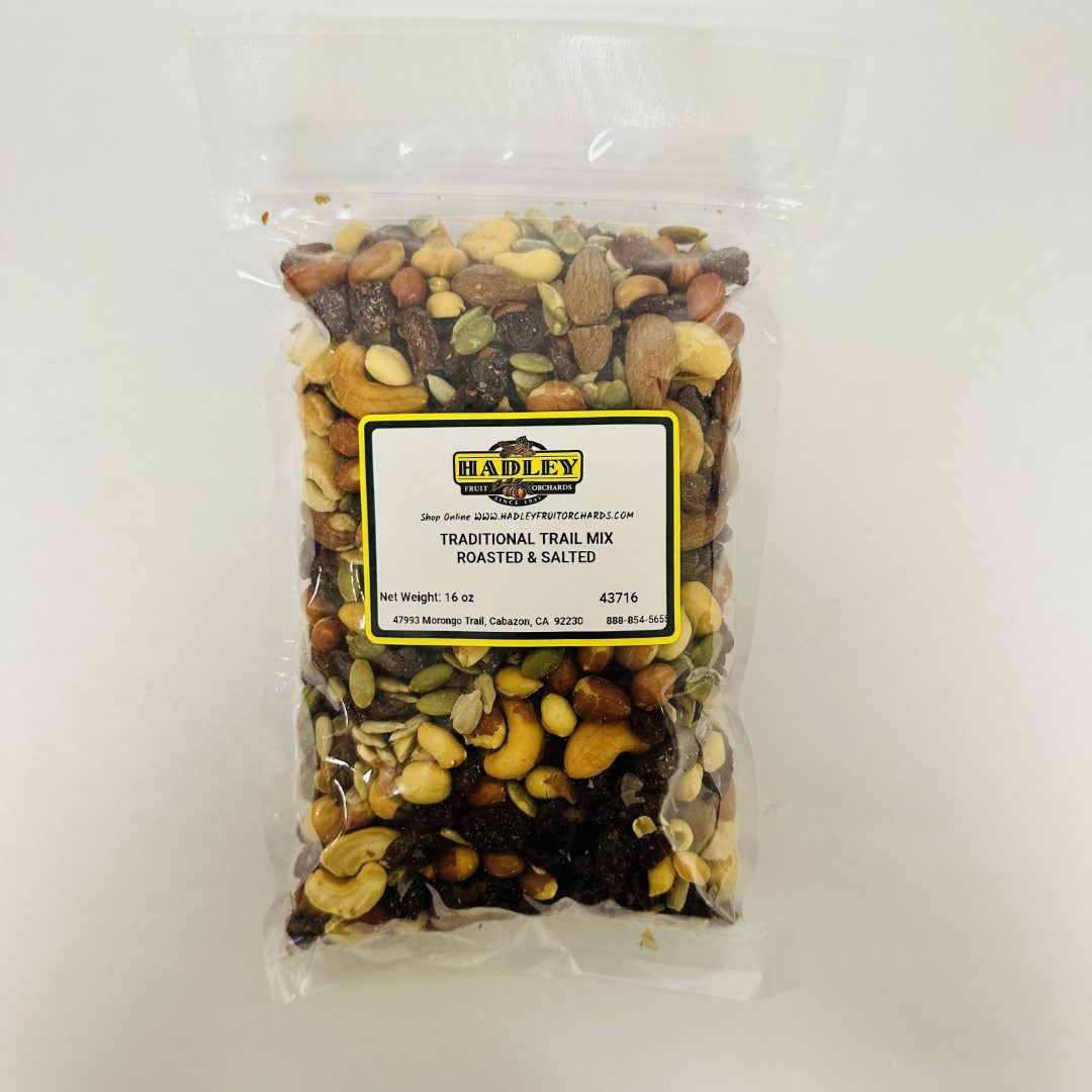 Ingredients: Almonds, Pepitas, Cashews (canola oil, salt), Virginia Peanuts ( peanut oil, salt), Sunflower Seeds ( sunflower oil, salt), Thompson Raisin. Net Weight: 16oz C.O.O USA