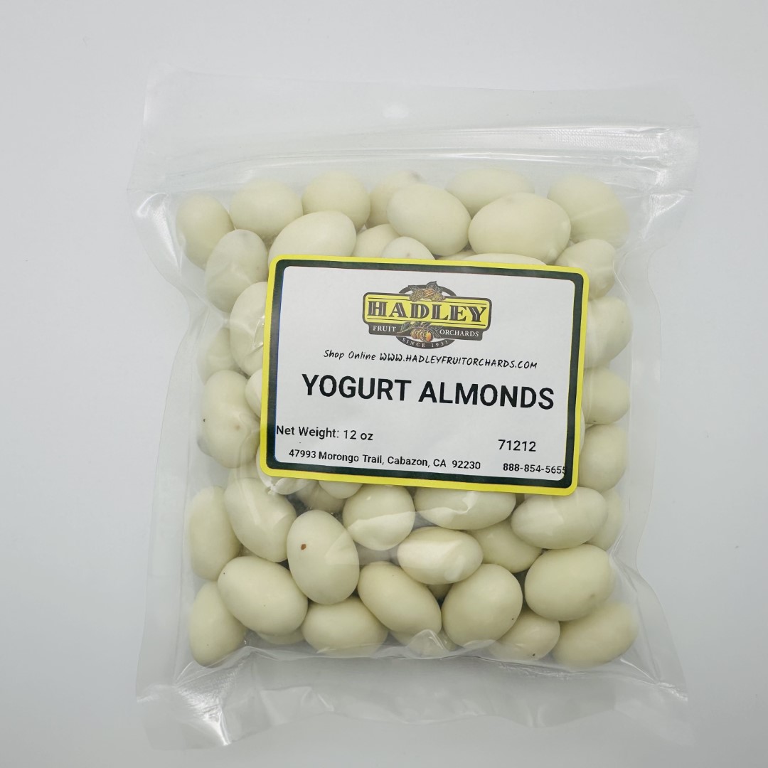 Ingredients: Yogurt Flavored Coating ( sugar, hydrogenated palm kernel oil, nonfat milk powder, Yogurt Powder [cultured whey & nonfat milk], Artificial Color ( titanium dioxide ), Lactic Acid, Soy Lecithin – an emulsifier, Vanillin – an artificial flavor, Almonds, Tapioca Dextrin, Confectioners Glaze.